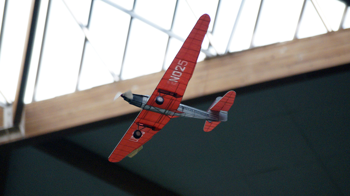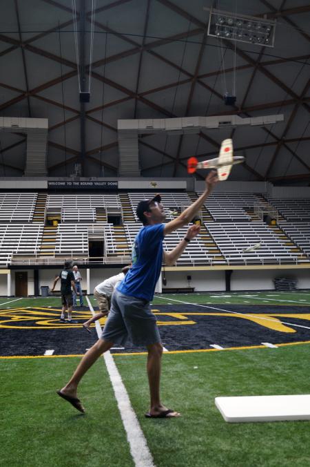 Once again, catching lift came into play Saturday morning. Launching your rubber model at the right place at the right time could garner you an extra few minutes. First place went to an LPP that was 20 feet from the ground, and then went back up to 80 feet in a rising air current. Of course, there is luck involved, but as we gain experience at this site, that luck is becoming less lucky and more skill oriented. That flight would have been around 11 minutes but ended up being well more than 14 minutes. Yours truly bided my time and watched, launching my model to the roof and judging where I would come down to the best possible low-level lift. I also floated around at 20 feet for more than three minutes extra. In the end, not enough as I missed first place by five seconds—all with picking air. Fun stuff here in the Enormo-dome.