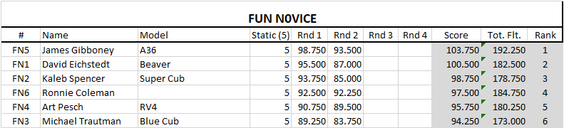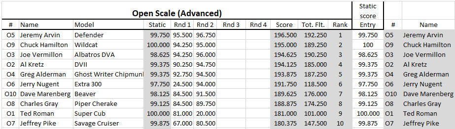 Greg Alderman's Yak 130 took second place in Fun Expert and his GhostWriter Chipmunk took fifth in Open Scale Advanced.