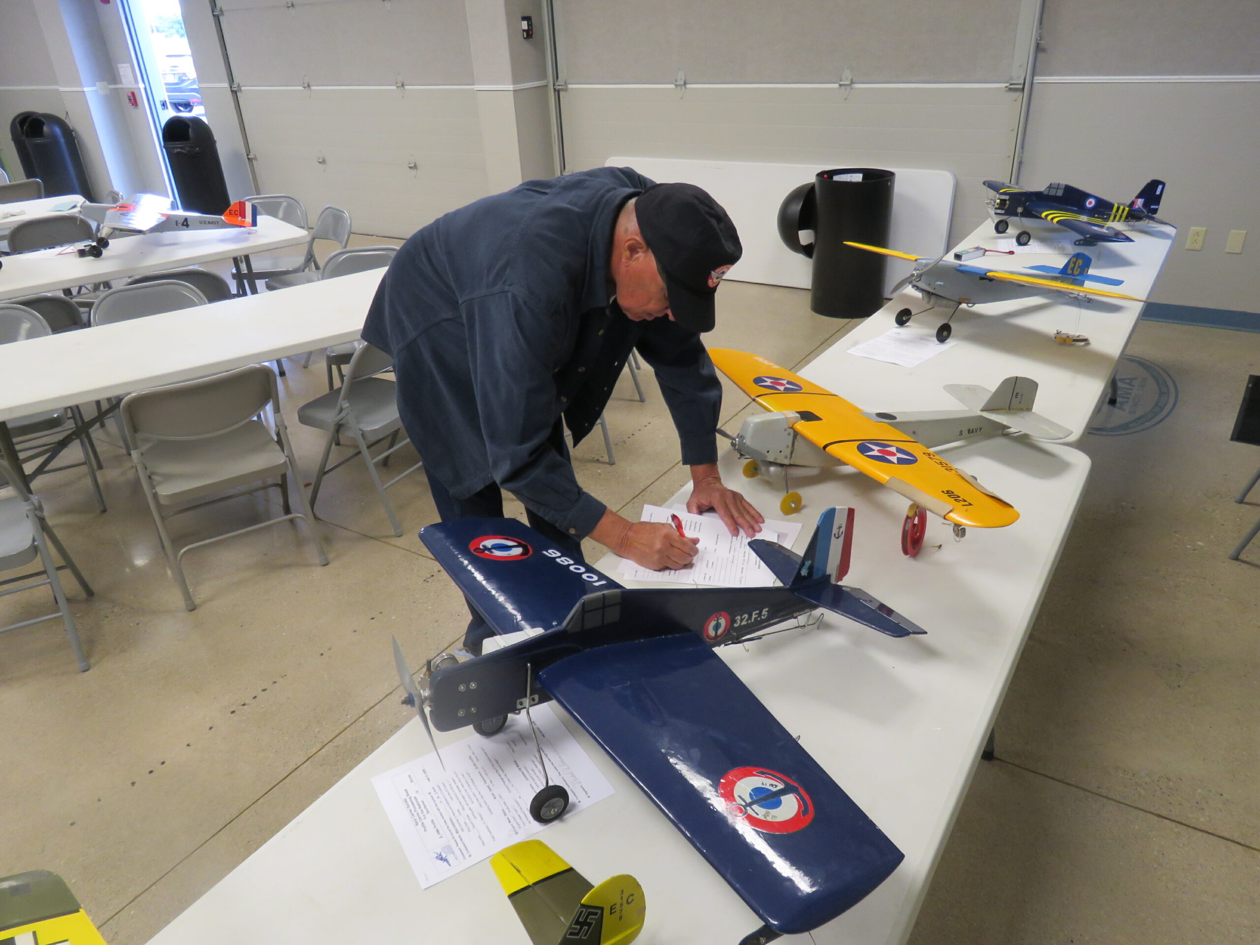Burt Brokaw filling out processing paperwork.