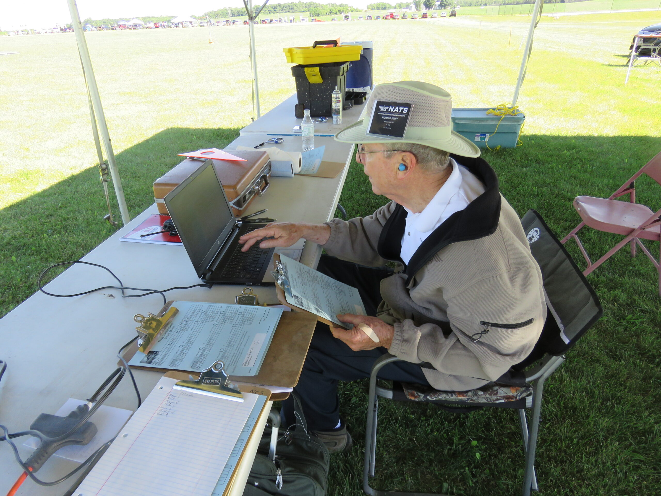 Event Director Melvin Schuette watching for infractions during Burt Brokaw low-speed flight.