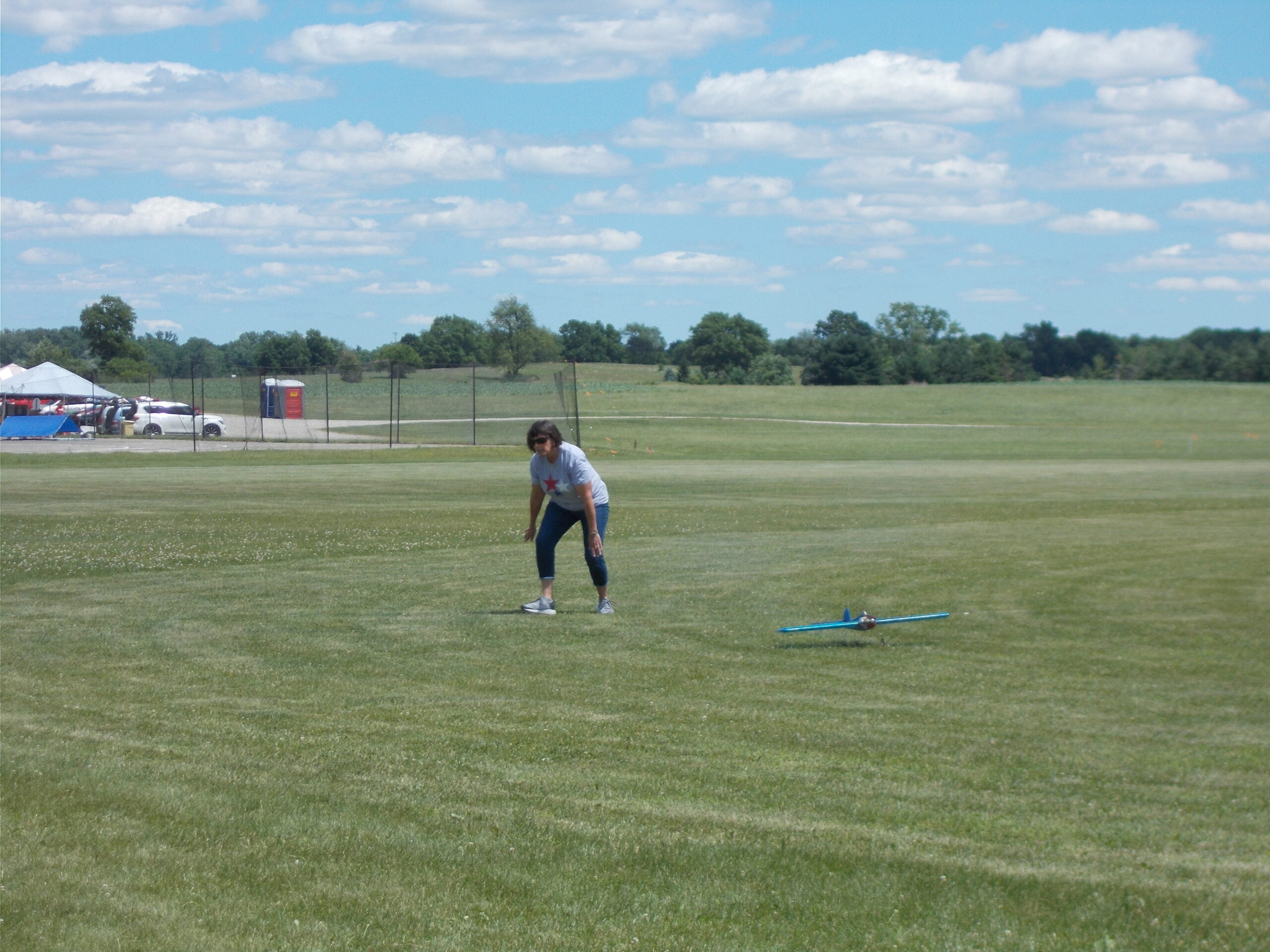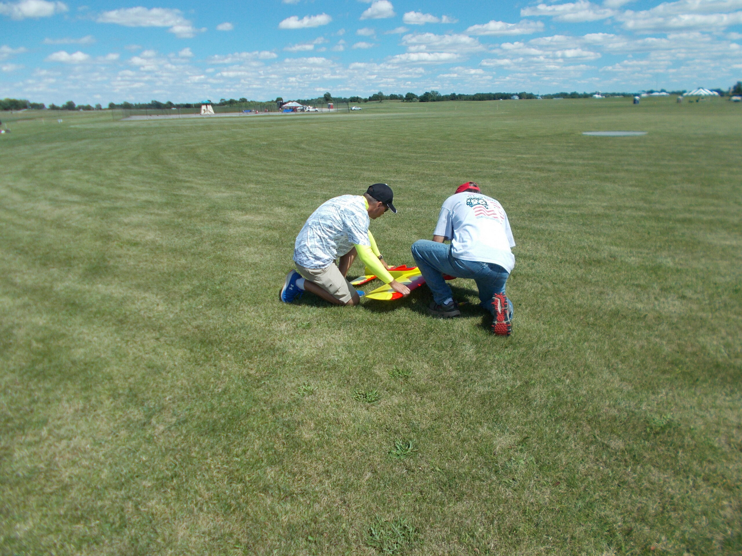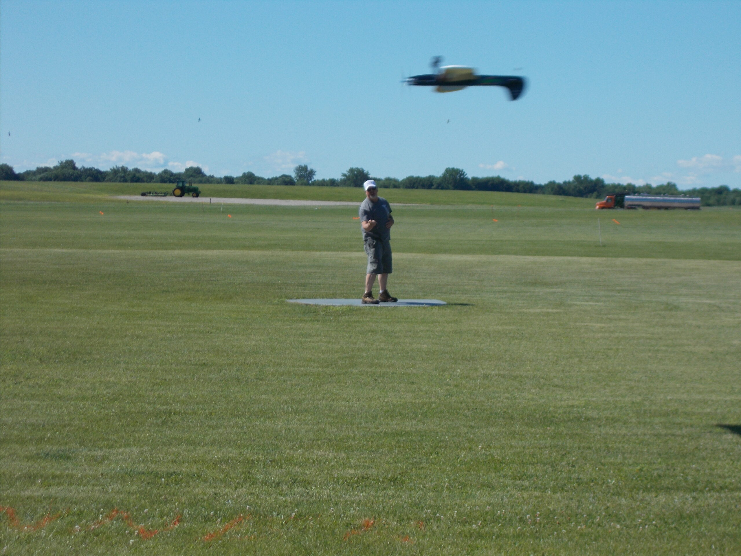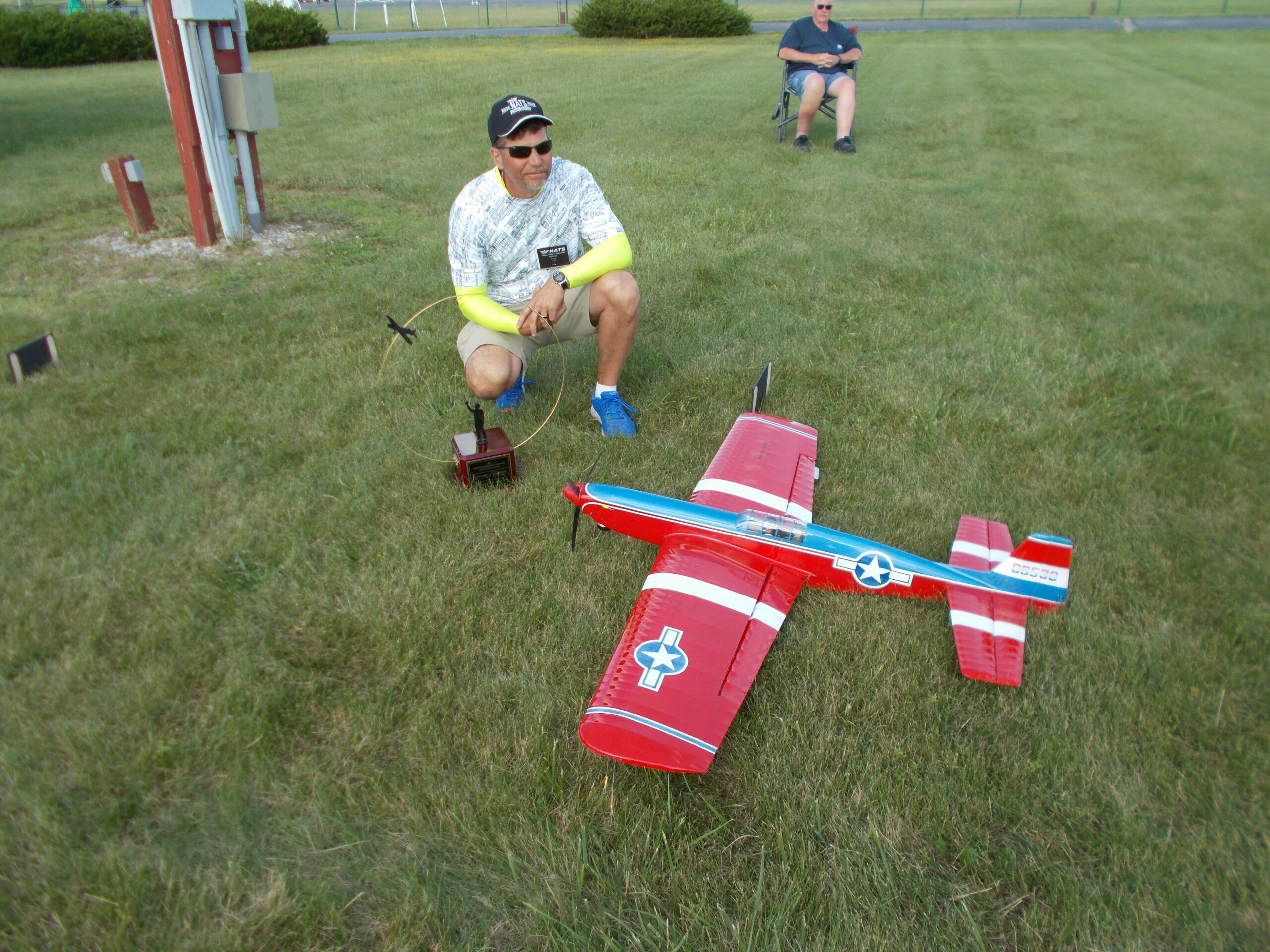 This does not mean that there was no competition going on, however. There were three events taking place down on the grass circles. These events were Classic, for which you have to have a plane that was either designed, published as plans, or kitted before January 1970, and Nostalgia 30, which has the same criteria as Classic except there is a rolling cutoff date of 30 years or older. And yes, you can fly a Classic plane in Nostagia 30 but not necessarily a Nostagia 30 in Classic. So, anything kitted or with plans published more than 30 years ago qualifies for this event. Also taking place Tuesday was Old-Time Stunt (OTS). These are planes that must have the plans published or kitted before 1952 and they use the old pattern. The other two events use the “modern” pattern, which is the one that we still use today.