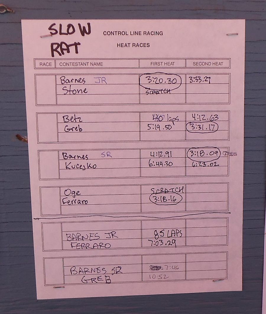 Slow Rat had eight entries, which is nearly double last year’s turnout. There were some decent races. The favored plane this year was the Mockingbird, kitted by Pat King. Richard Kucjeko entered a neat Bearcat semiscale racer, also rumored to soon be kitted by Pat King.
