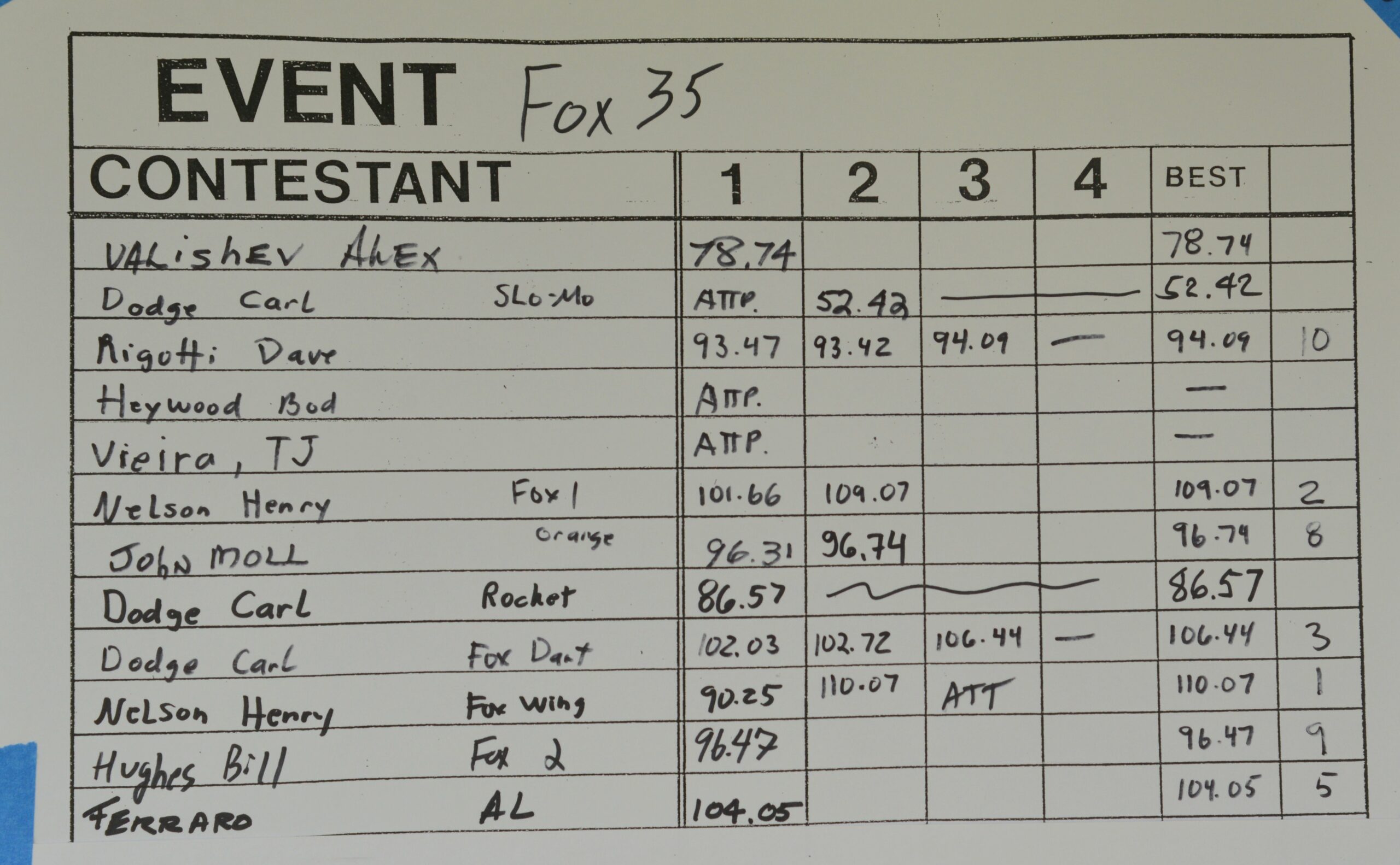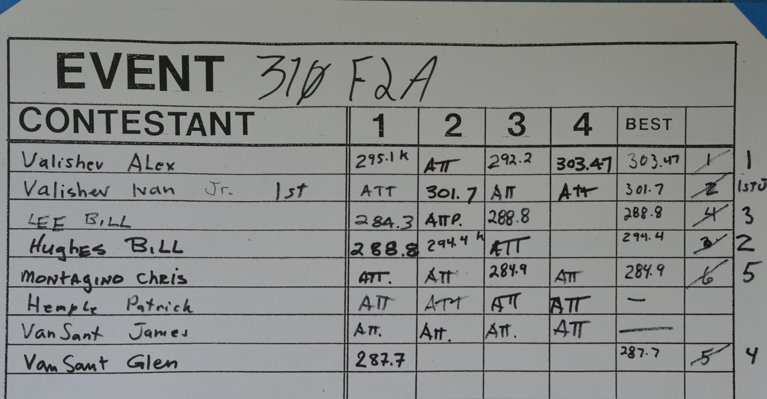 First place and National Champion was won by Alex Valishev. His speed was 303.47 kph.