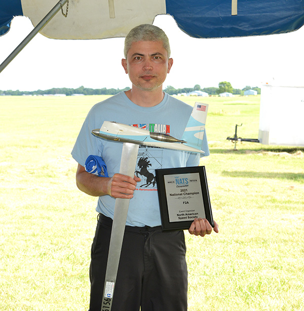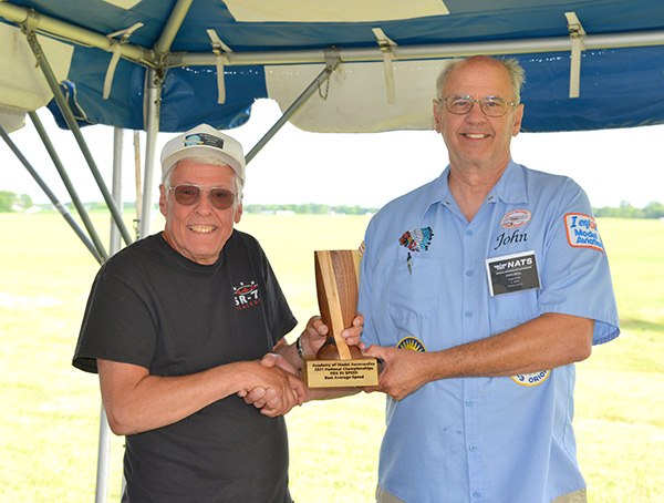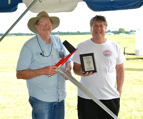 Third place in F2A was earned by Bill Lee at 284.9. Also pictured is his proxy pilot, Patrick Hempel.