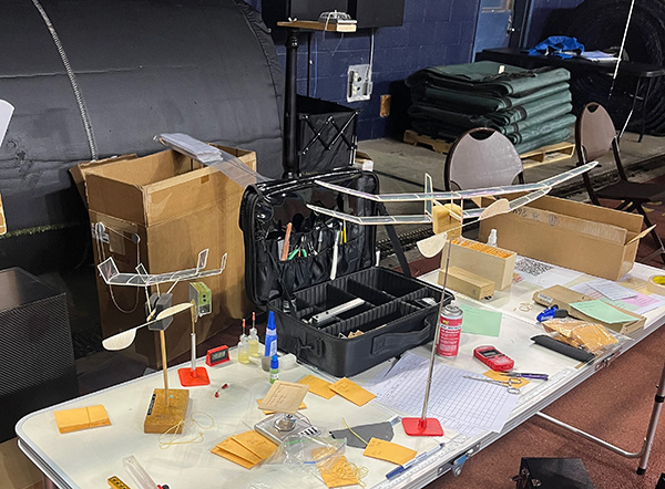 The third and final day of the 2025 Indoor Free Flight Nats saw a change in the outside weather. The morning was a bit cooler and a light rain had settled in. Opinions were mixed around the dome as to how the change in conditions would impact the buoyancy of the air and drift patterns inside the building. Some competitors opted to fly early in the morning, while others waited as late as possible. Both contingents were hoping to get the best air available.