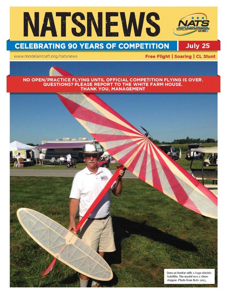 Today is the start of Outdoor Free Flight. Soaring started up over the weekend with Two Meter and Hand-Launch Thermal. Saturday was the final day for Control Line Stunt. Check out today’s Outdoor NatsNews for information on these great events.