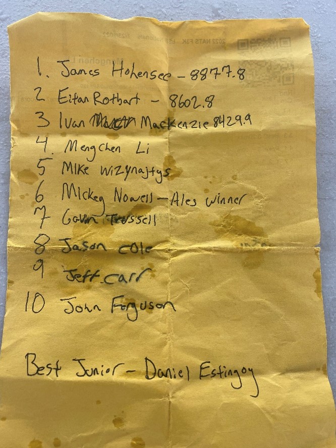 It was a great contest for sure. The ping match between Eitan Rotbart and James Hohensee was amazing to watch.
